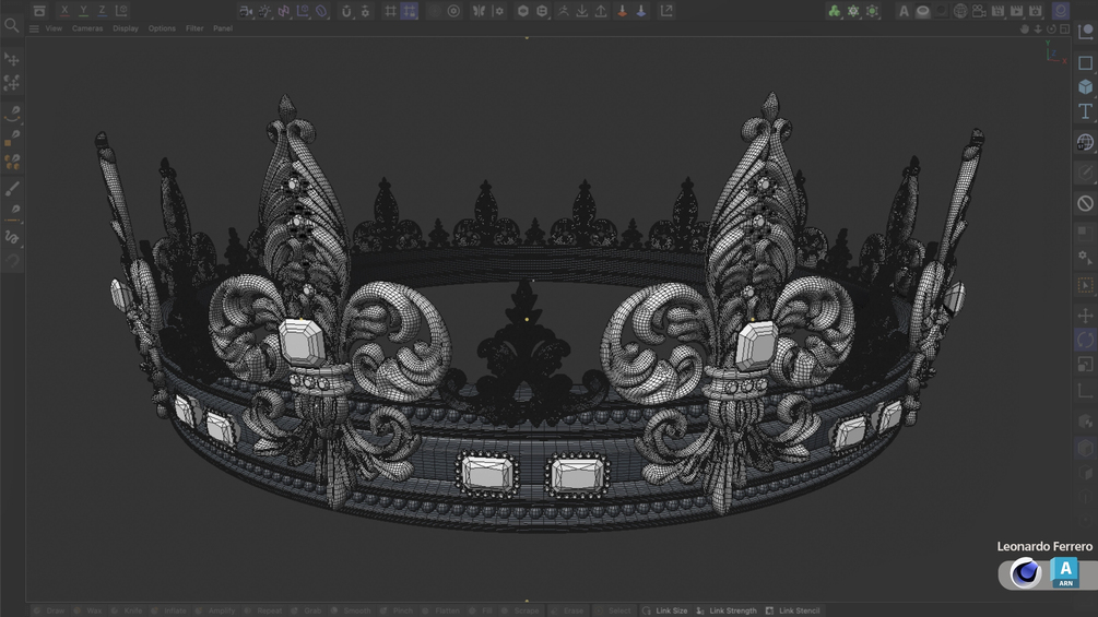 Description: Immerse yourself in the opulence of this high-poly 3D model—a stunning golden crown crafted by the talented Leonardo Ferrero using Cinema 4D. The photorealistic preview images were rendered with Arnold Render.