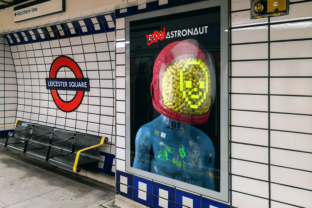 Explore the urban tale of 'Dope Astronaut 0033' by Leonardo Ferrero. This digital artwork invites you to ponder the intersection of streetwear and contemporary existential questions.Have you taken your pill today? 🌆🎨 #UrbanArt #DigitalMasterpiece #StreetwearInspiration