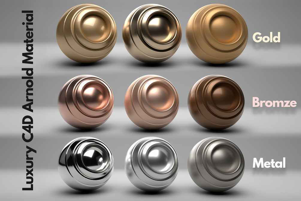 Immerse yourself in the world of luxury with our exclusive Luxury Metal Bundle, featuring not one, but nine opulent materials in Gold, Bronze, and Silver tones. Meticulously crafted for seamless integration with Cinema 4D and optimized for the Arnold Render engine, this premium bundle is a creation of digital artist Leonardo Ferrero.